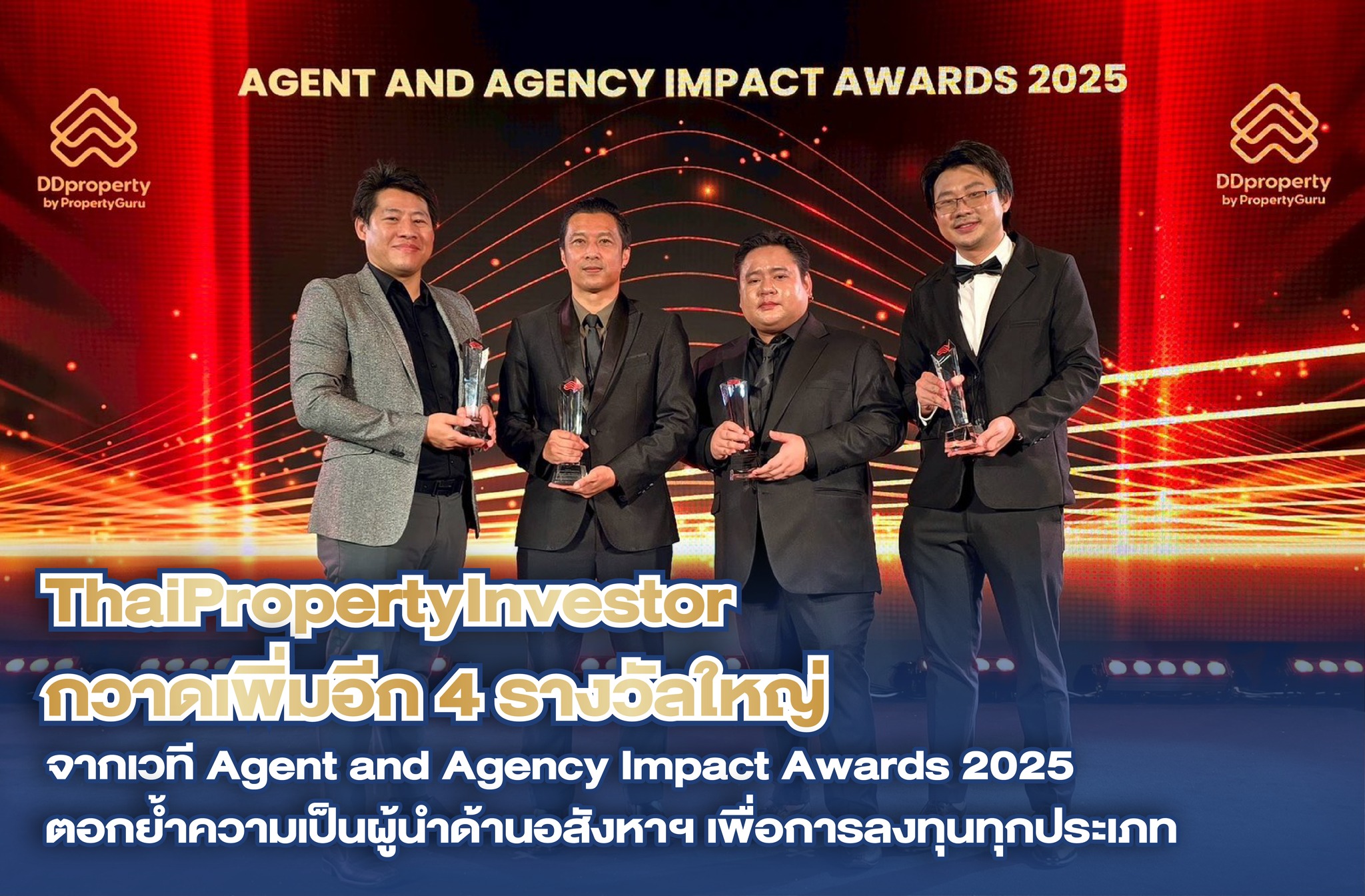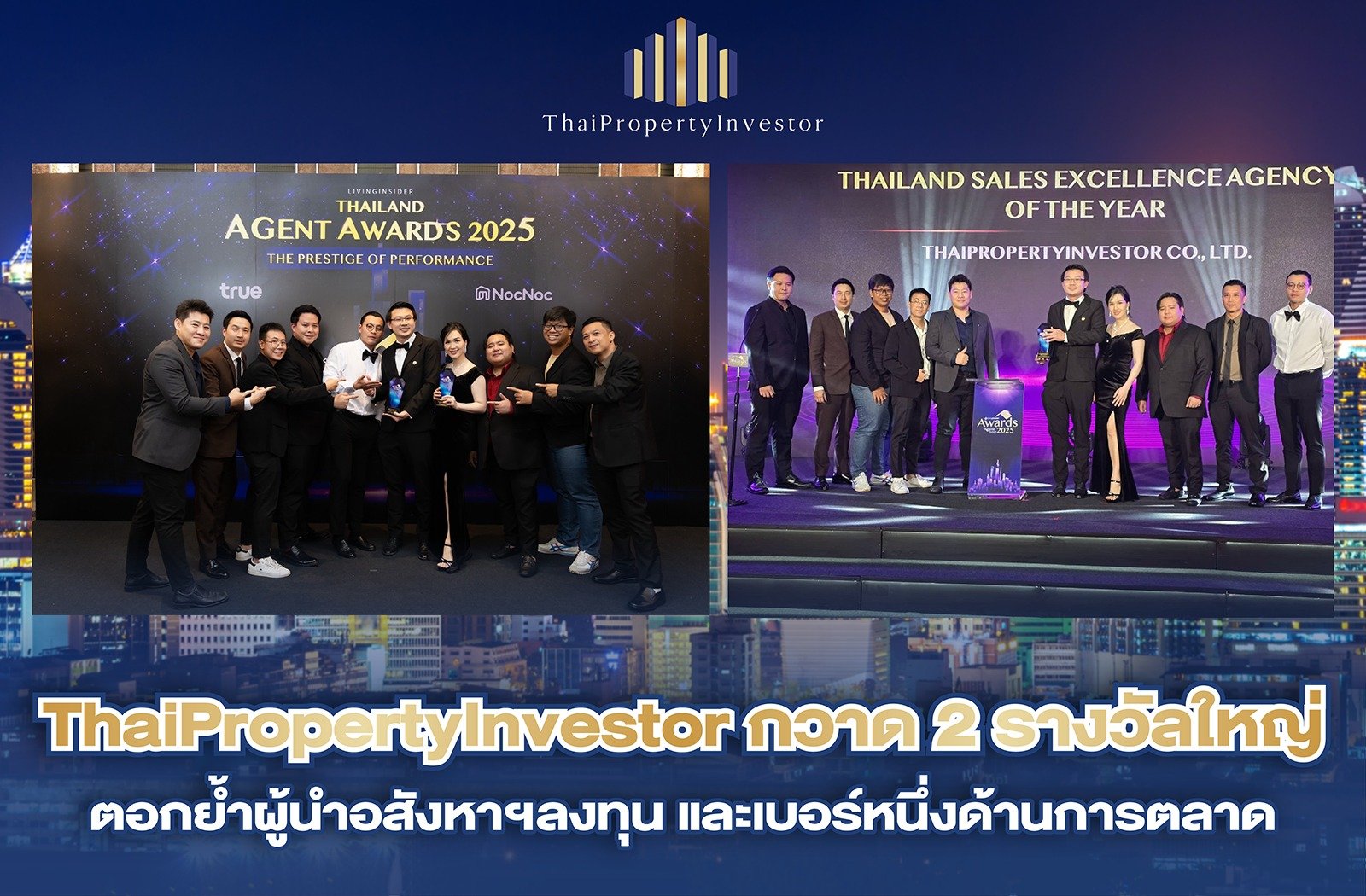 จากความมุ่งมั่นในการยกระดับมาตรฐานวงการอสังหาฯ ไทย สู่ความสำเร็จระดับประเทศ ThaiPropertyInvestor ตอกย้ำความเป็นผู้นำตัวจริงด้วยการกวาด 2 รางวัลใหญ่จากเวที "Thailand Real Estate Agency Award in Thailand 2025" ทั้งในสาขา "The Best Agent in Property Investor of Thailand" และ "Recognition of Excellence in Commercial Property of Thailand" ความภาคภูมิใจนี้เป็นแรงผลักดันให้เราเดินหน้าพัฒนาบริการและนวัตกรรมด้านข้อมูลอย่างต่อเนื่อง เพื่อเป็นมากกว่าตัวแทนขาย แต่เป็น "คู่คิดการลงทุน" ที่คุณวางใจได้เสมอ