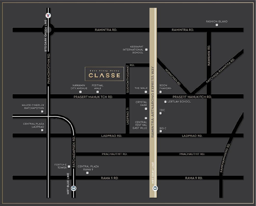 • ถนนหลักกว้าง 18 ม. และถนนภายในกว้าง 9 ม.