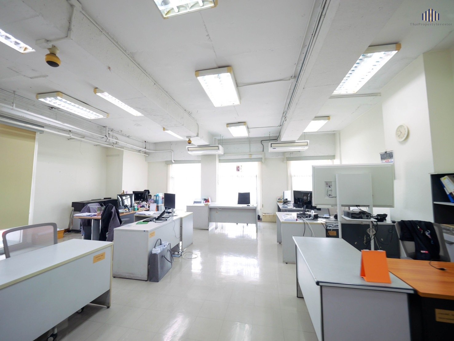 出售 Ratchadaphisek 58 路旁黄金地段办公楼,面积 361.4 平方哇,实用面积1,843.49 平方米,7 层楼有电梯,有足够的停车位, 位置优越,紧邻主干道,很适合好的形象以及近 BTS!