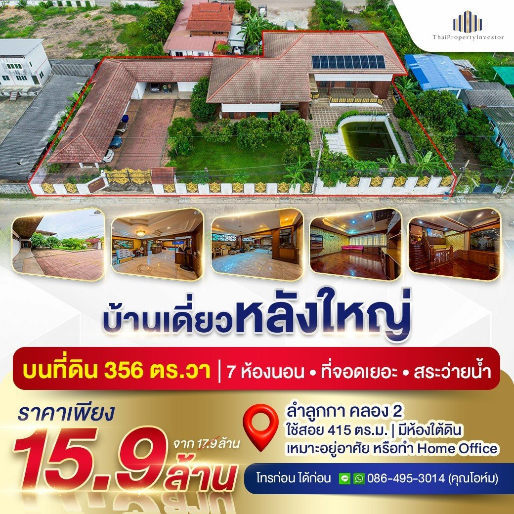 急售!Khu Khot 中心地带,近轻轨 (BTS),面积超过 356 平方哇,带泳池的大型住宅!三层 ,7 间卧室 , 7 个停车位 , 地下室 |,适合大家庭或家庭办公室,物超所值,赶快行动