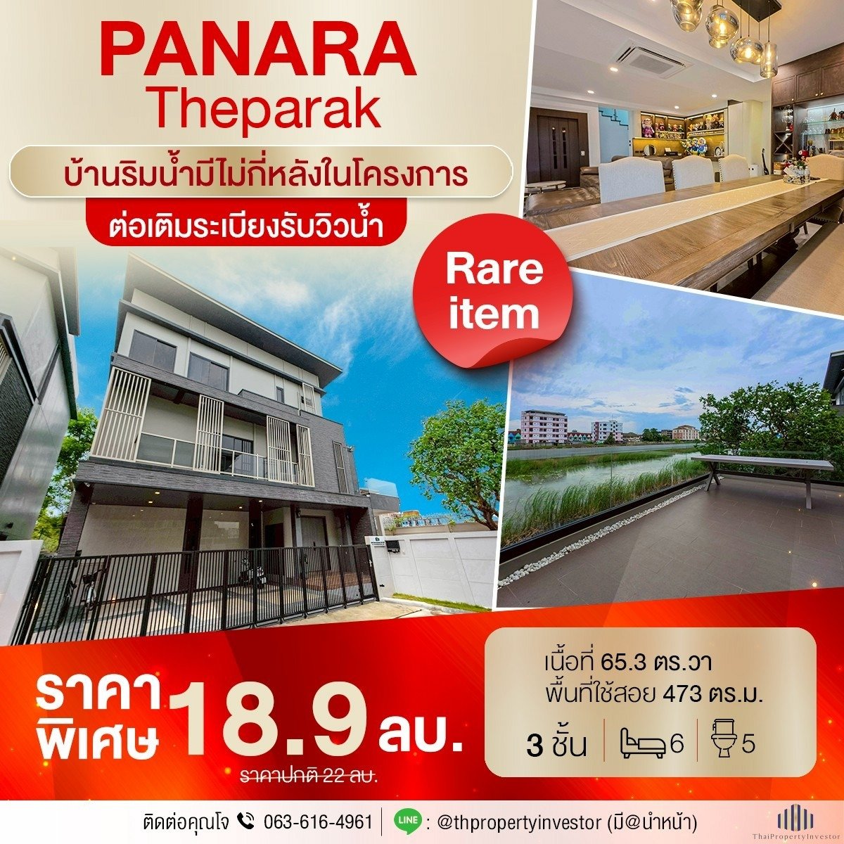 出售三层独栋临水别墅,功能齐全,全屋加建,有电梯 Panara Thepharak,65.3平方哇,位于主干道Thepharak 路旁的黄金地段