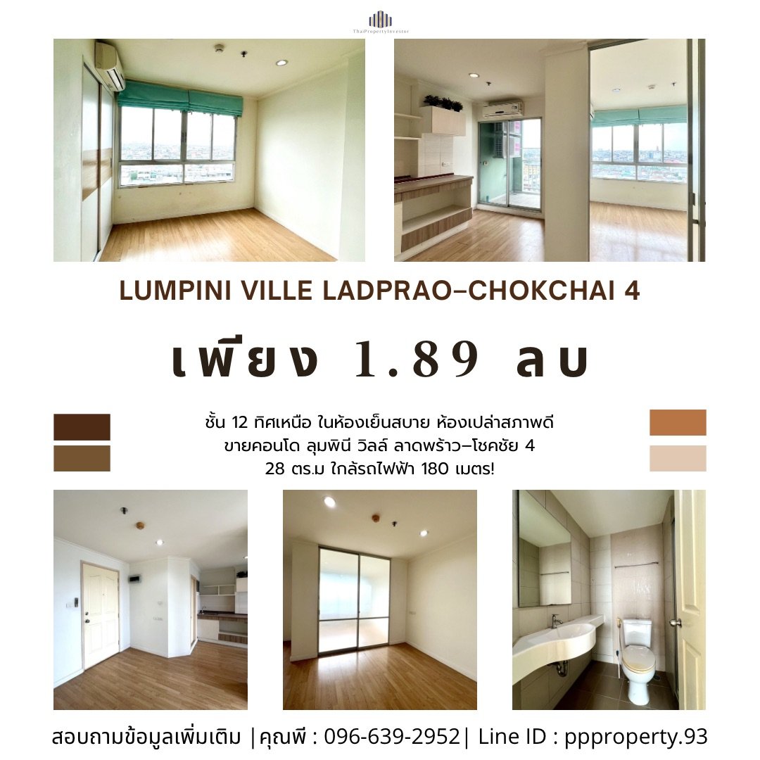 朝北空房,清凉安静整天 | 出售公寓 Lumpini Ville Ladprao–Chokchai 4,距捷运站仅180米!