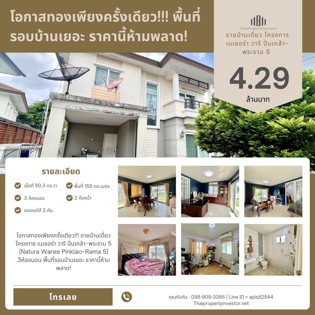 千载难逢机会!!!出售位于 Natura Waree Pinklao–Rama 5 的独栋住宅。3 间卧室,宽敞居住空间。不容错过!