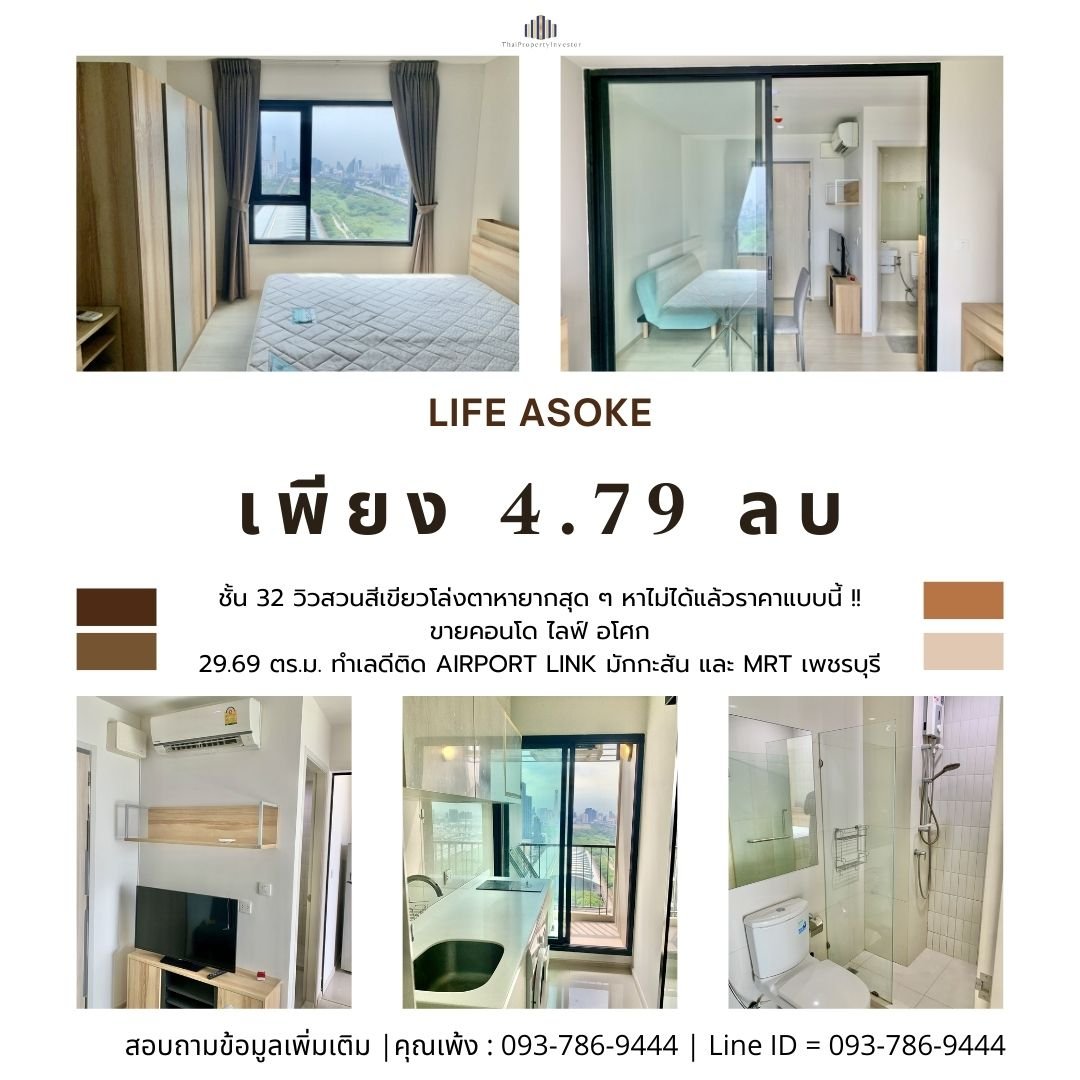 绝无仅有!出售Life Asoke 公寓,面积 29.69 平方米,位于 32 层,坐拥难得的园景,离地铁站仅 130 米,一览无余的绿色花园景观实属难得!立即预订,售完即止!