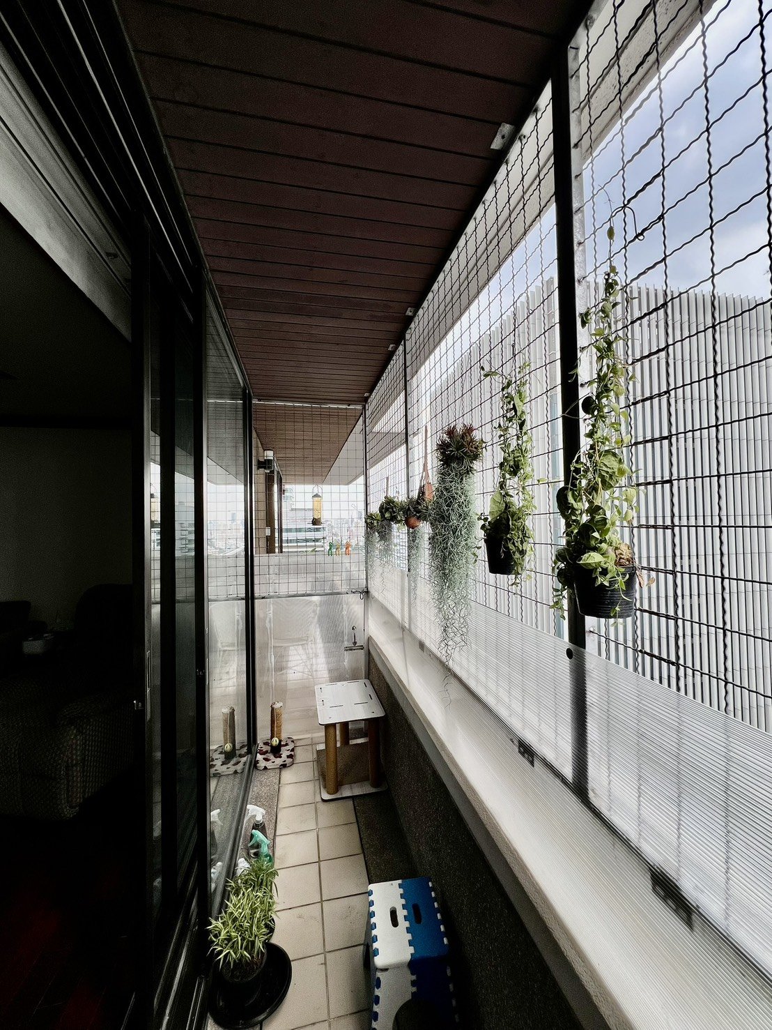 阳台连接卧室和客厅,并有足够的空间放置书桌