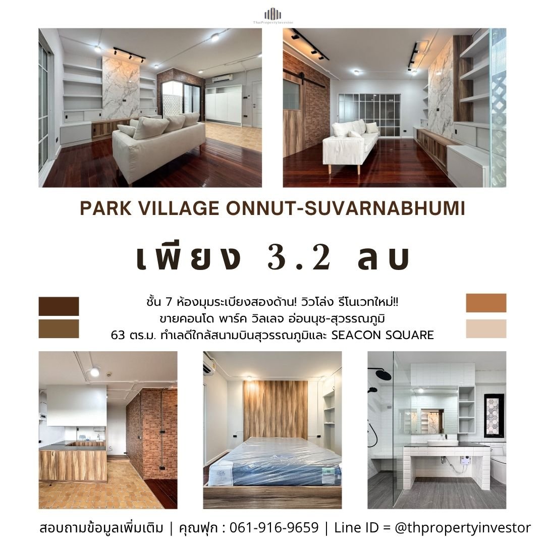 转角单元,双阳台!视野开阔!全新装修!位于素万那普机场 Nut 路 Park Village,63 平方米,7 楼
