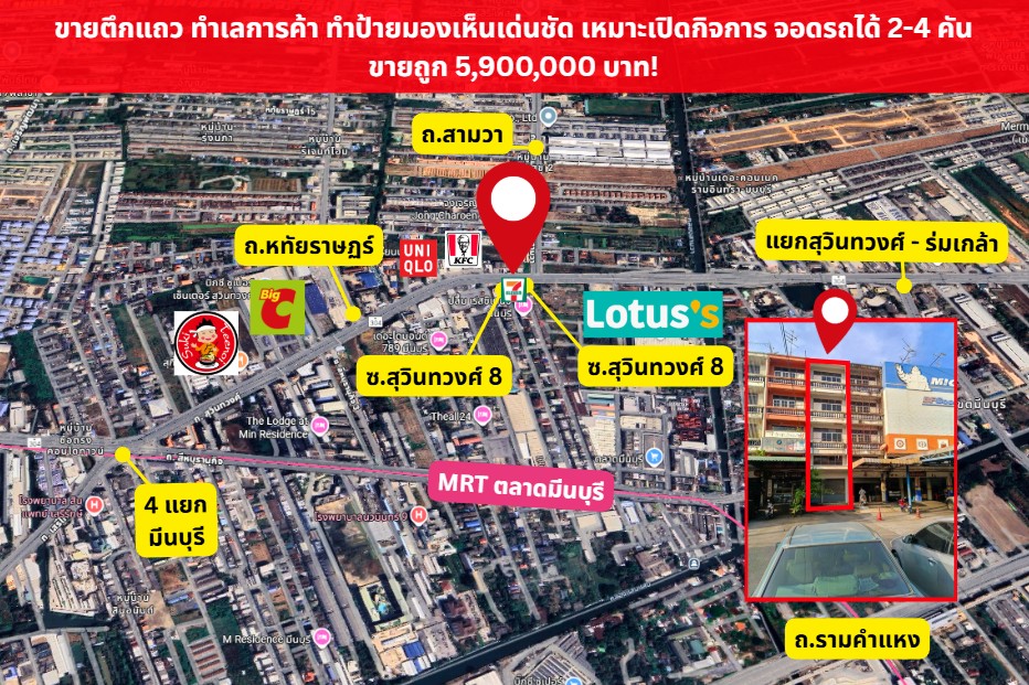 出售位于苏汶通路的商用楼(就在三挖路巷口处),靠近敏武里四岔路口