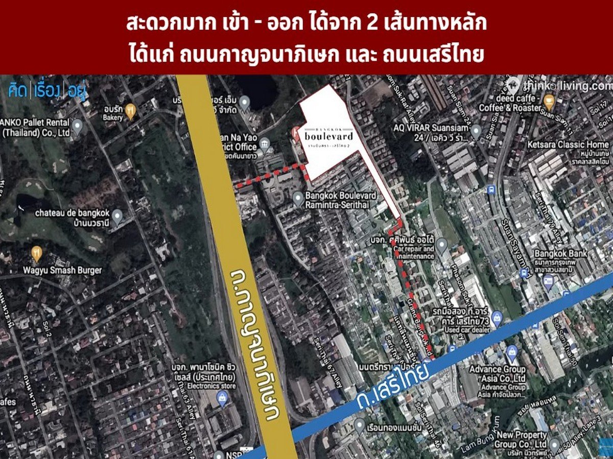 ✅ 社区有 2 个出入口(可从 Kanchanaphisek 环城高速及 Serithai Road 出入)