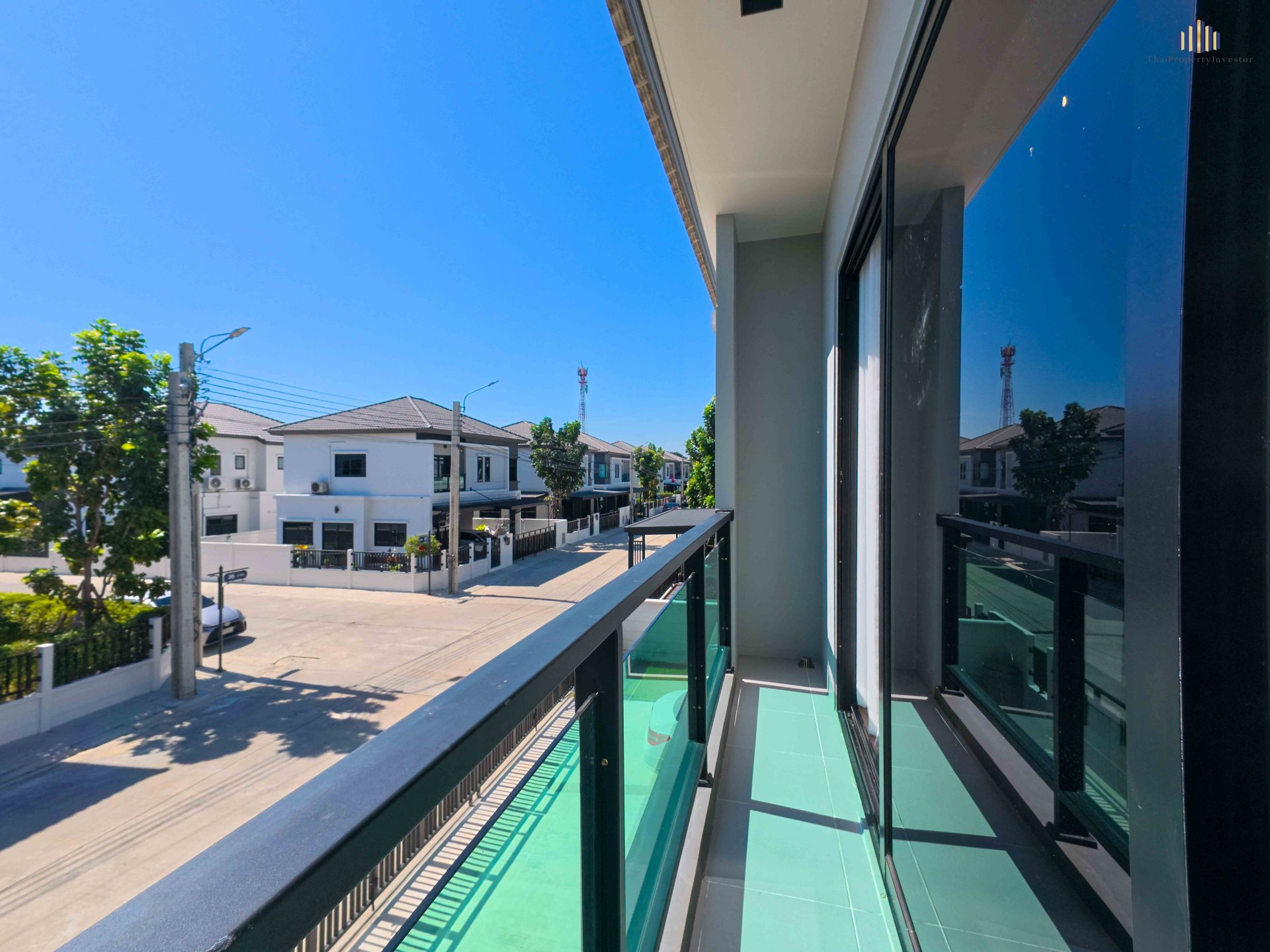 出售全新精美别墅!位于曼谷Khlong Sam Wa县Sam Wa Tawan Tok区Kanchanaphisek路,占地70.2平方哇,四卧四卫,三个停车位,备先进的智能家居系统。