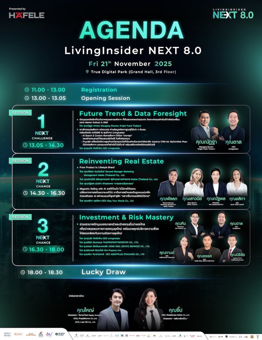 ปีนี้ คุณโม นิธิธัช จิรเวศยกุล CEO บริษัท ไทยพร็อพเพอร์ตี้อินเวสเตอร์ จำกัด ได้รับเชิญขึ้นเวทีเป็นหนึ่งในผู้บรรยายหลัก ถ่ายทอด ภาพจริงจากสนาม ที่สะท้อนให้เห็นการเปลี่ยนแปลงสำคัญของตลาดอสังหาฯไทยในรอบ 23 ปีที่ผ่านมา