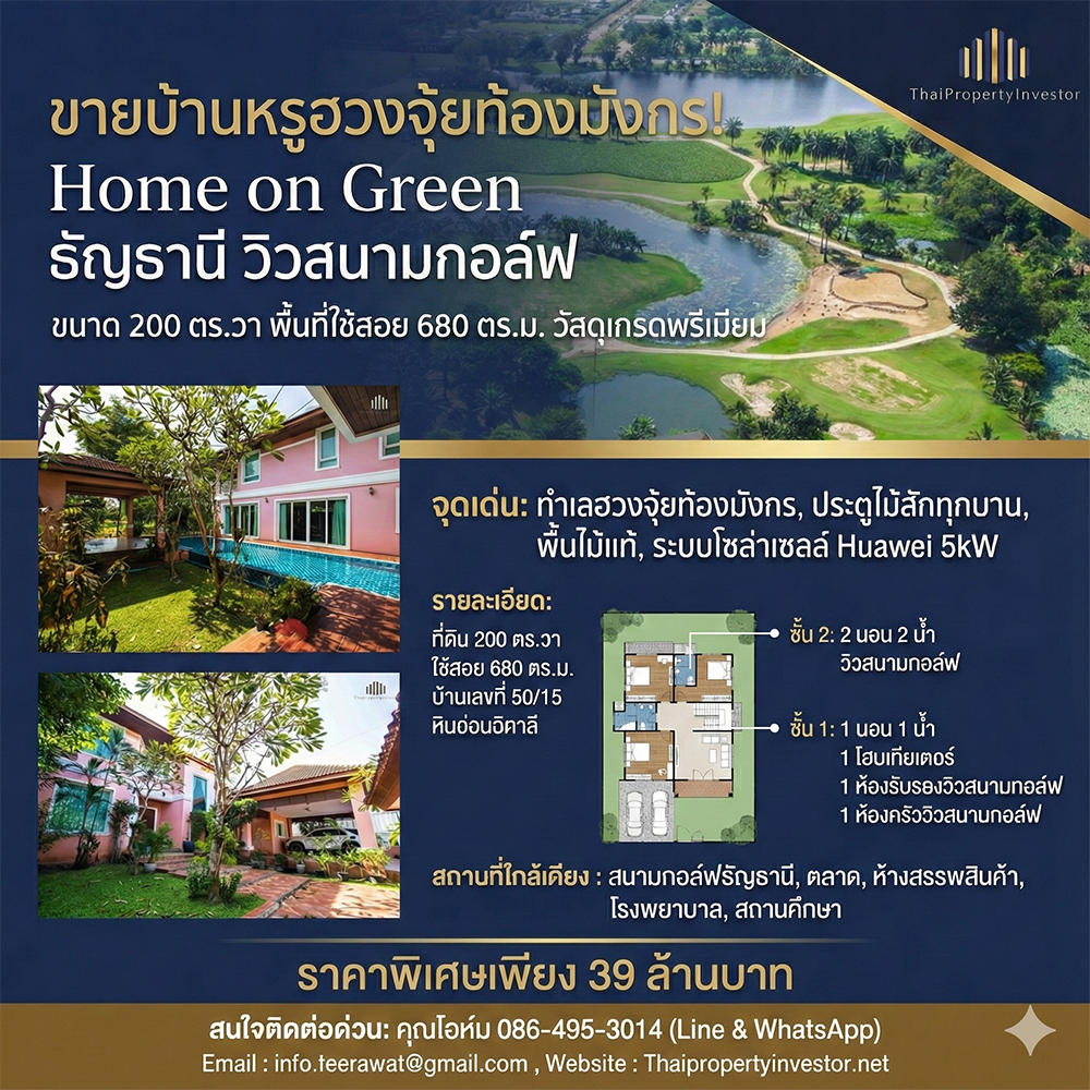 Luxurious Feng Shui "Dragon's Belly" Home for Sale! Highly Coveted Property in Home on Green Thanyathani – 200 sq. wah, 680 sq.m. with Golf Course View, Premium Materials,
