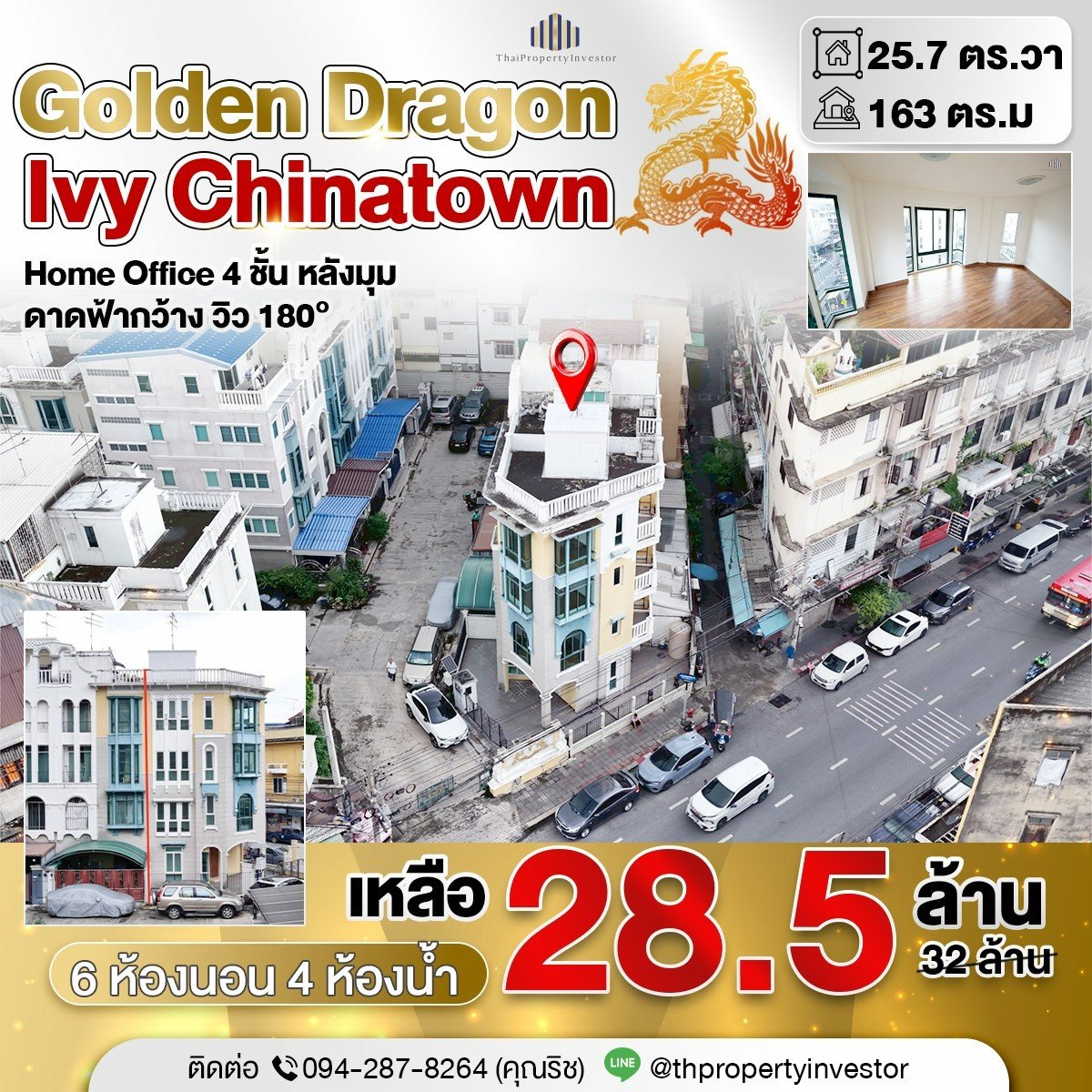 Rare Home Office at Yaowarat! 25.7 Sq.Wah Corner Townhome for Sale at Ivy Chinatown near MRT Wat Mangkon & MRT Hua Lamphong