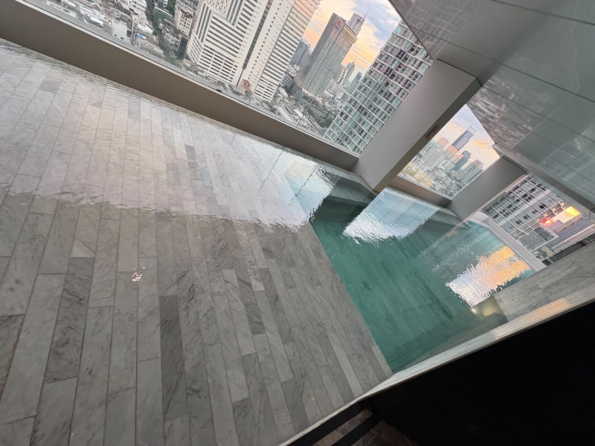 ✅ 24th Floor: The Blue Edge – large L-shaped swimming pool, pool terrace with multiple daybeds, separate male/female bathrooms and sauna