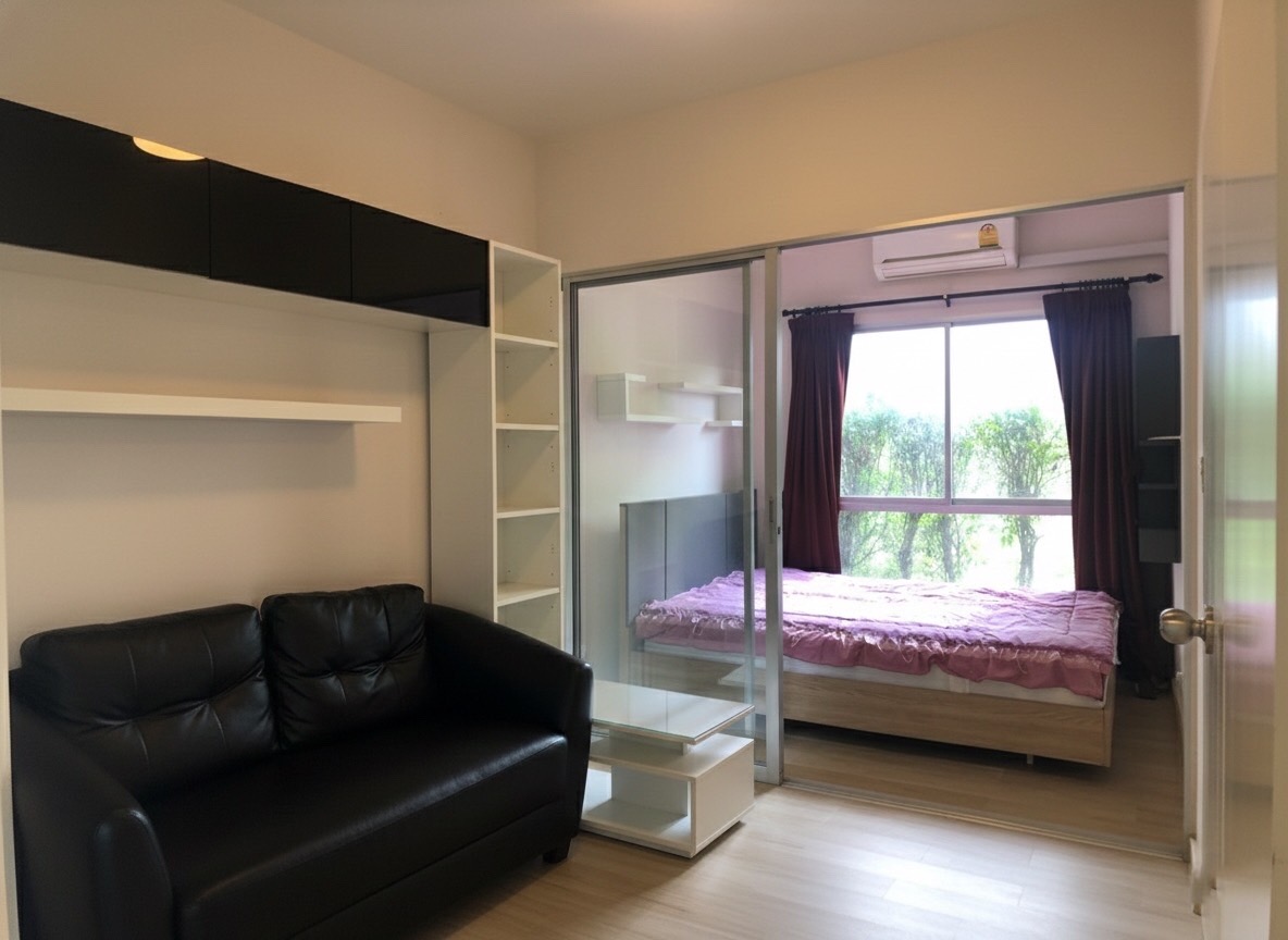 Condo for SALE! Garden view, high privacy. 23.05 sq.m. at Plum Condo Bangyai Station, just 500 meters to MRT Khlong Bang Phai station.