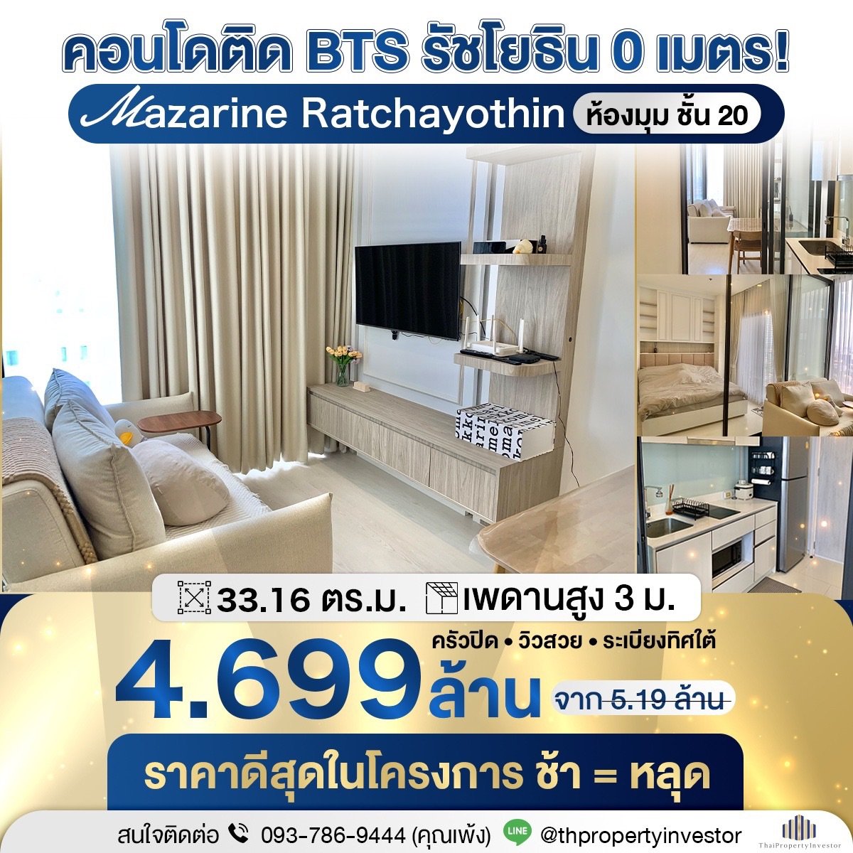 Rare Opportunity – Condo Directly Connected to Ratchayothin BTS Mazarine Ratchayothin size 33.16 sq.m. 20th floor with one of the best prices in the project.