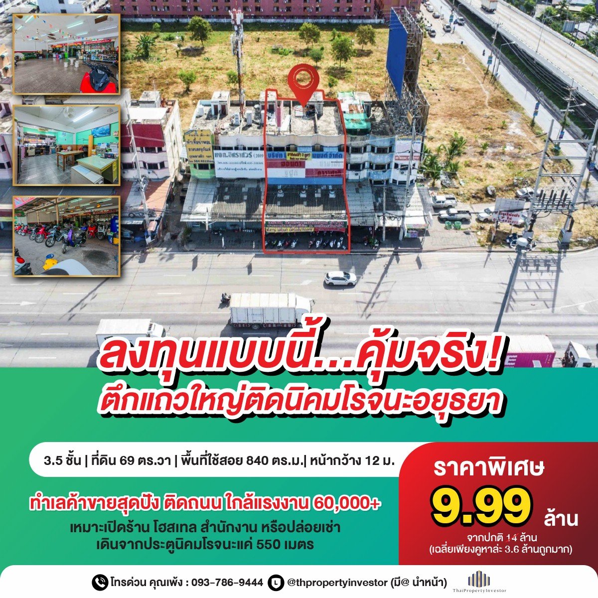 ตึกแถวติดถนนโรจนะทำเลทองใจกลางนิคมโรจนะอยุธยาเหมาะลงทุนเปิดร้าน-ปล่อยเช่า คุ้มมาก !! ขายถูกตึกแถวอาคารพาณิชย์ 3 คูหาใหญ่ ที่ดิน 69 ตร.วา.3.5 ชั้น ทำเลทองคุ้มสุดๆๆ