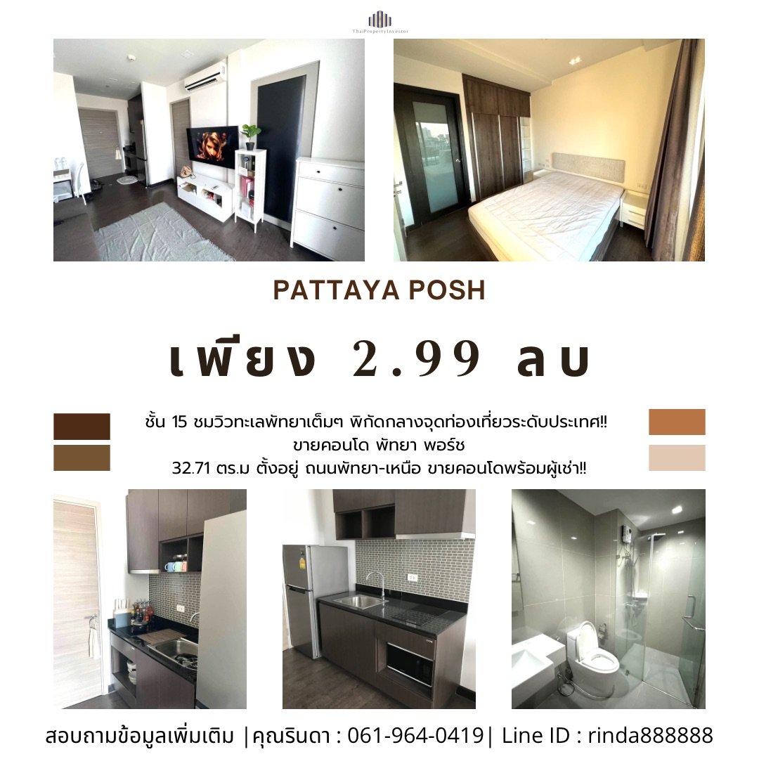 ขายคอนโด Pattaya Posh ชั้น 15 วิวทะเลพัทยา 32.71 ตร.ม. ทำเลดีพัทยาเหนือ ใกล้ Terminal 21 พร้อมผู้เช่ารับค่าเช่าทันที 12,000 บาท/เดือน เหมาะลงทุน ราคาเพียง 2.99 ล้านบาท