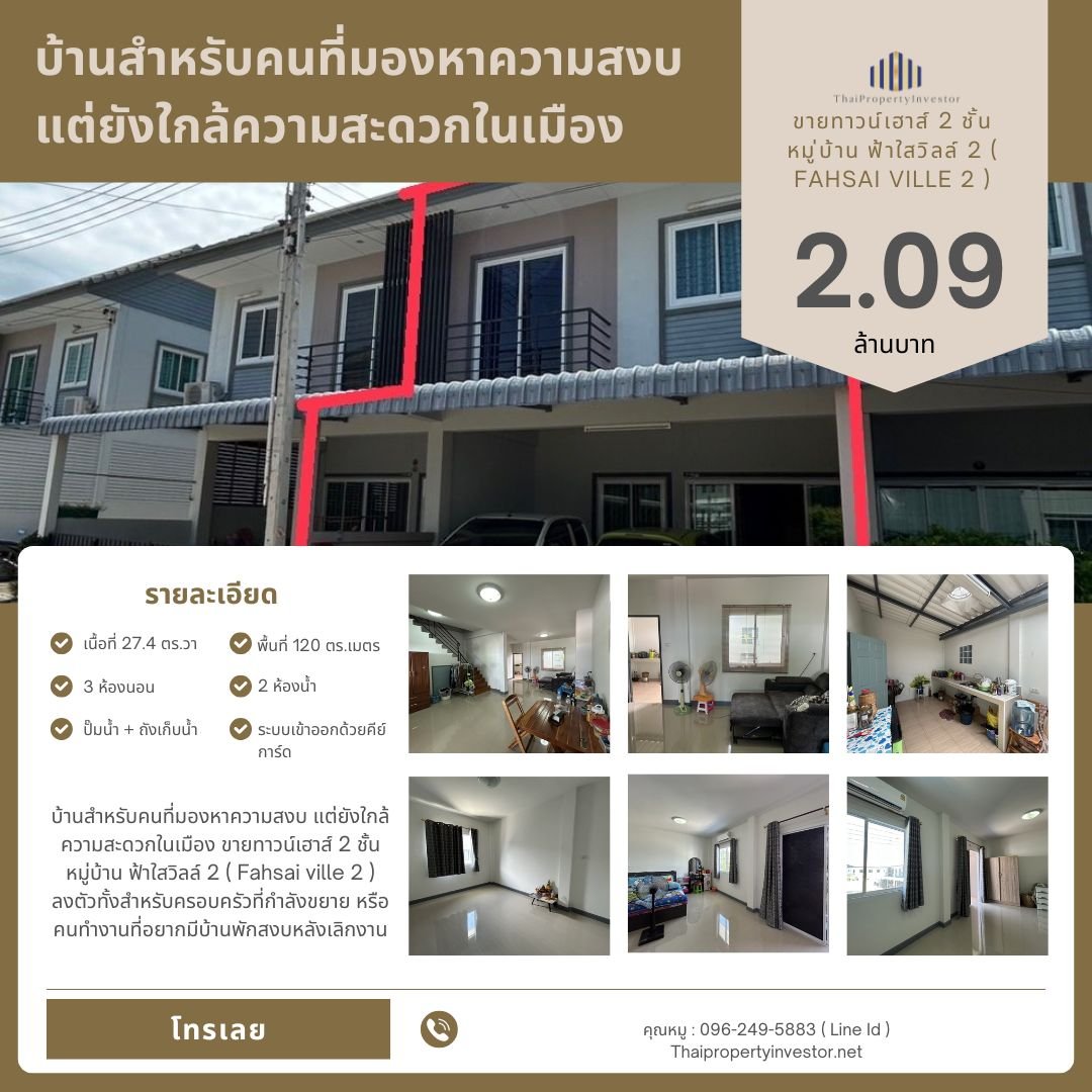 บ้านสำหรับคนที่มองหาความสงบ แต่ยังใกล้ความสะดวกในเมือง ขายทาวน์เฮาส์ 2 ชั้น หมู่บ้าน ฟ้าใสวิลล์ 2 ( Fahsai ville 2 ) ลงตัวทั้งสำหรับครอบครัวที่กำลังขยาย หรือคนทำงานที่อยากมีบ้านพักสงบหลังเลิกงาน