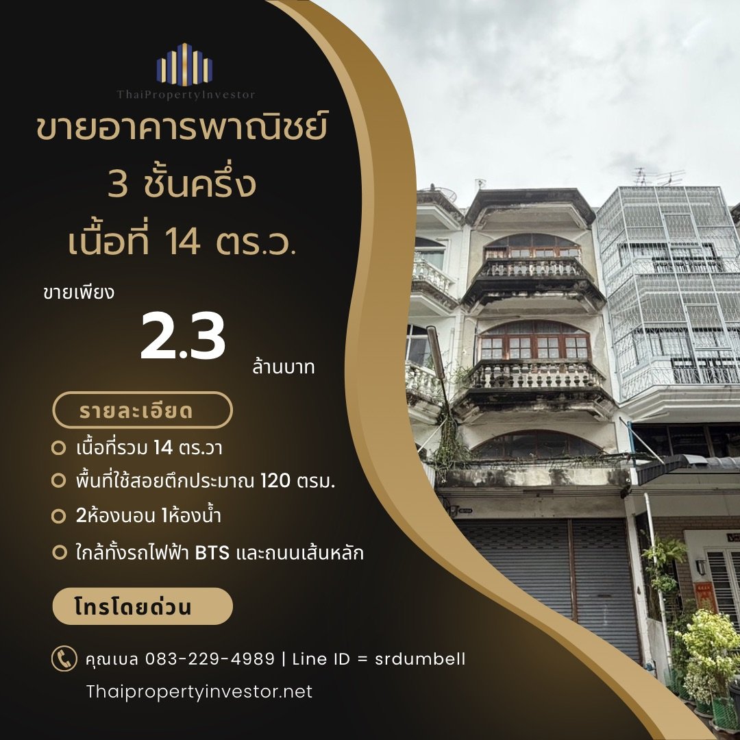 ขายด่วน! อาคารพาณิชย์ 3 ชั้นครึ่ง ซอยจอมทอง 13 ขนาด 14 ตร.ว. ทำเลดีใกล้ BTS วุฒากาศ เพียง 10 นาที เหมาะสำหรับลงทุนทำธุรกิจหรืออยู่อาศัย ราคาพิเศษเพียง 2.3 ล้านบาท
