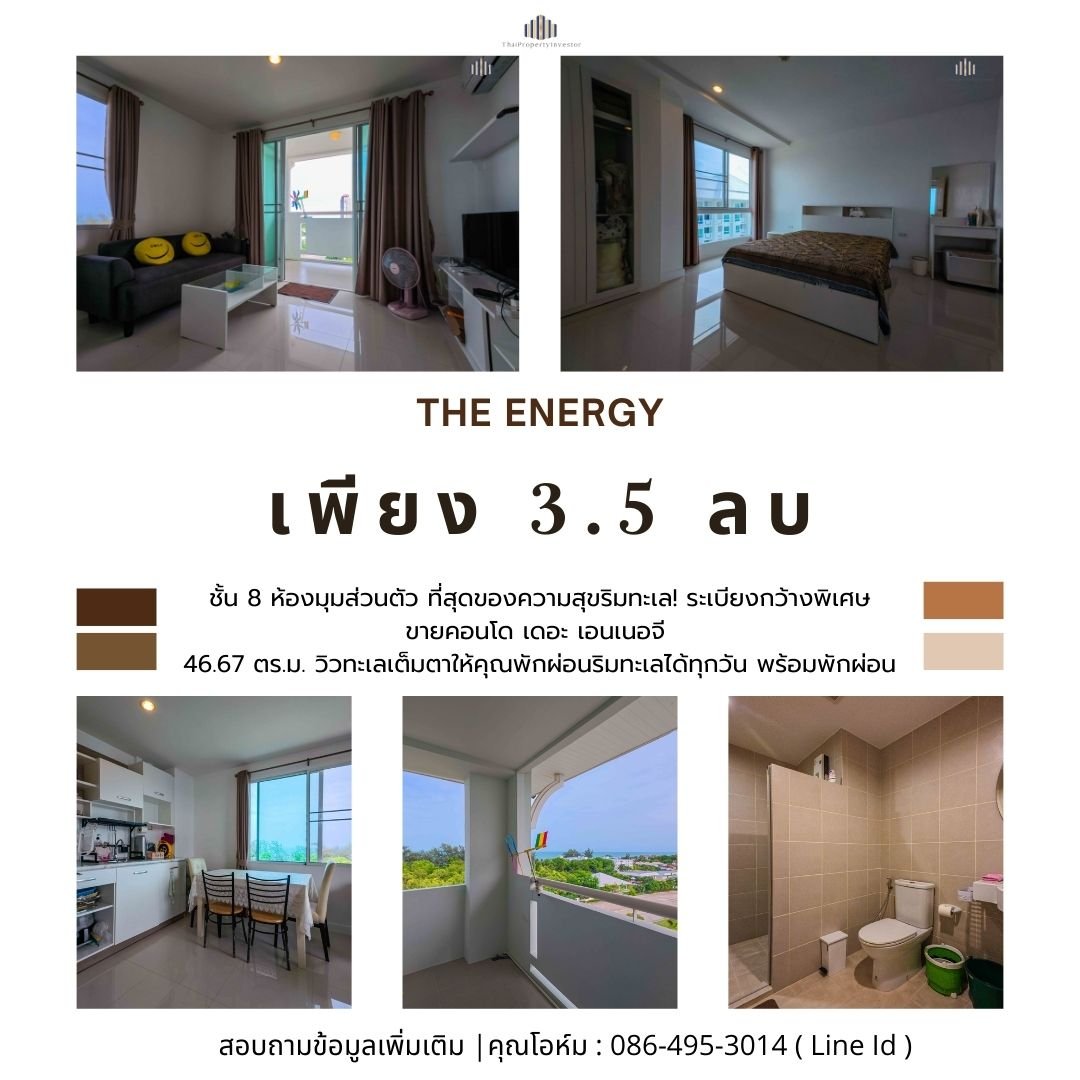 ที่สุดของความสุขริมทะเล! คอนโด The Energy ชั้น 8 ห้องมุมส่วนตัว 46.67 ตร.ม. ระเบียงกว้างพิเศษ วิวทะเลเต็มตาให้คุณพักผ่อนริมทะเลได้ทุกวัน พร้อมพักผ่อนและทำกำไร