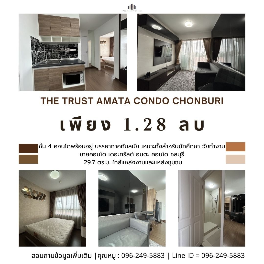ขายคอนโด The Trust อมตะ ชลบุรี ขนาด 29.7 ตร.ม. ชั้น 4 ตกแต่งพร้อมอยู่ ทำเลดีใกล้นิคมอมตะนครและมหาวิทยาลัย เหมาะสำหรับลงทุนปล่อยเช่า