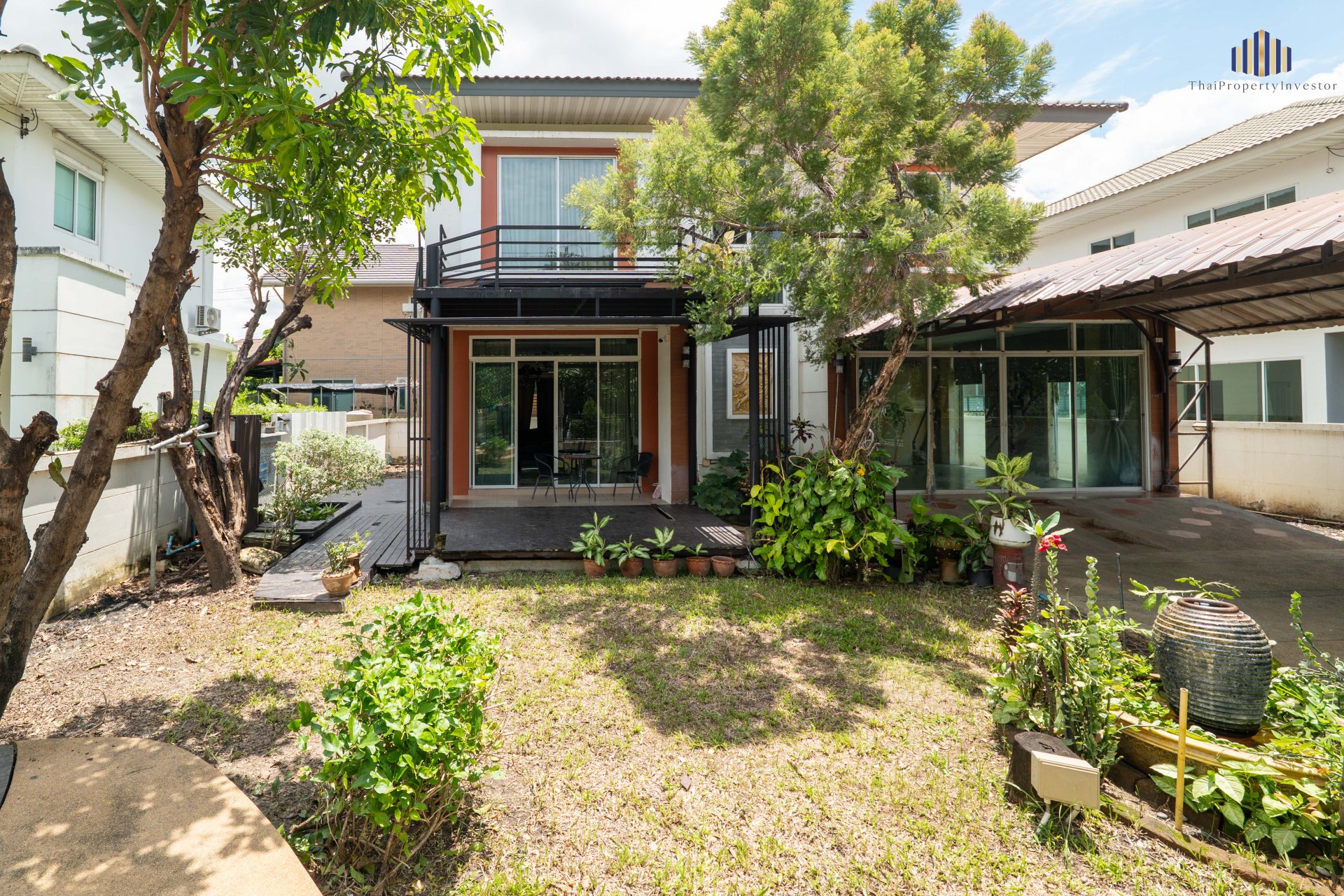 ต่อเติมระเบียงชั้นบน รับลม–รับวิวเลค | สวนรอบบ้าน | หลังคาเหล็ก | จอดรถ 2 คัน