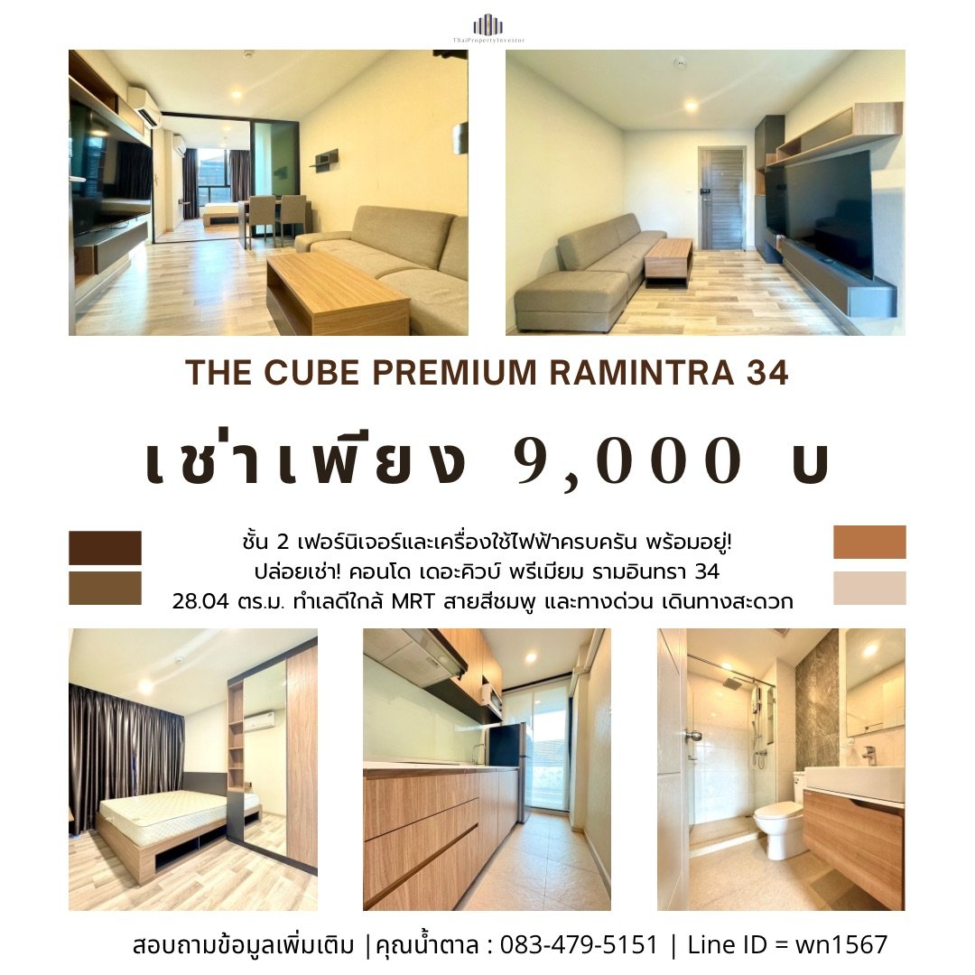 ให้เช่าคอนโด The Cube Premium รามอินทรา 34 ขนาด 28.04 ตร.ม. ชั้น 2 เฟอร์นิเจอร์และเครื่องใช้ไฟฟ้าครบครัน ทำเลดีใกล้ MRT สายสีชมพู และทางด่วน เดินทางสะดวก