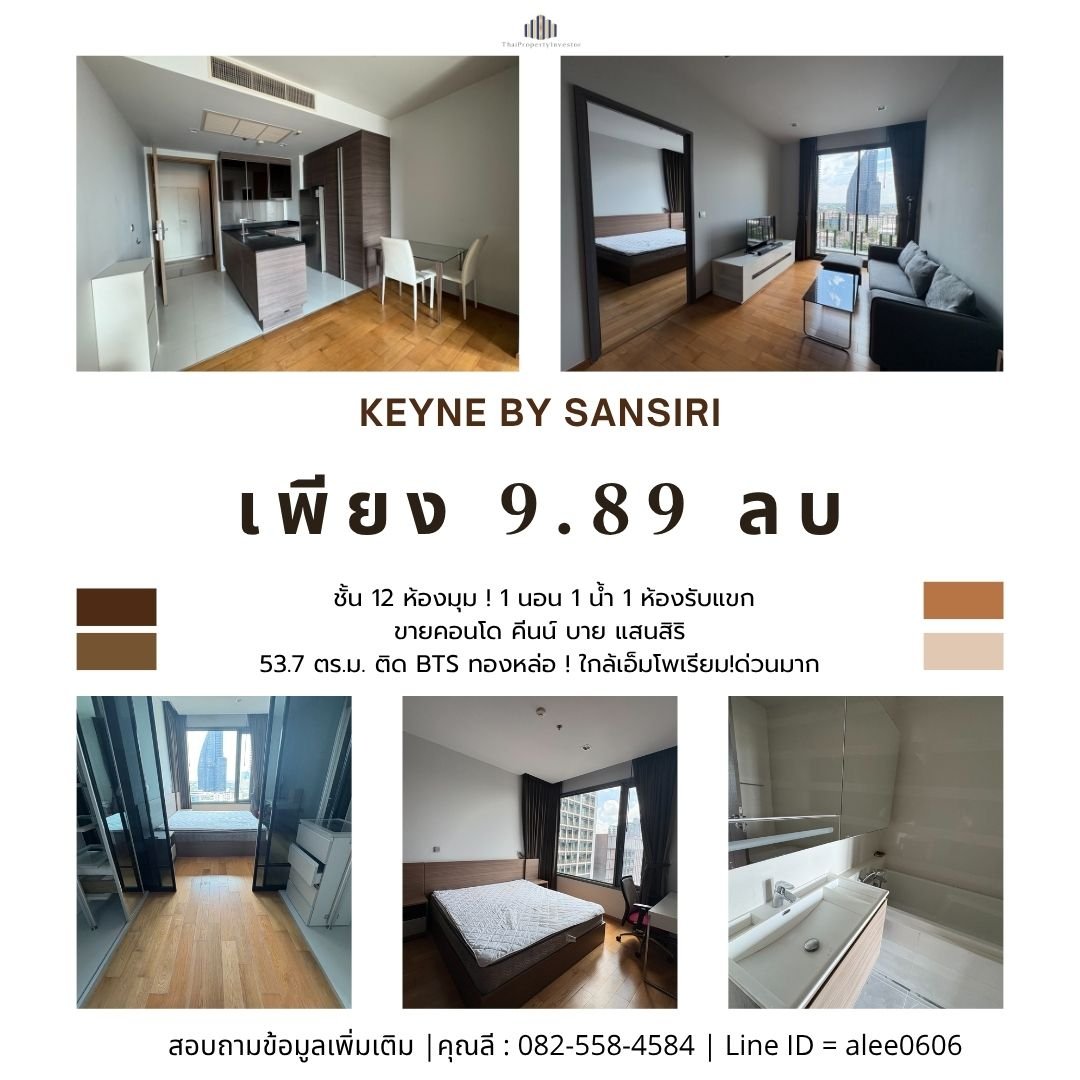 ชั้น 12 ห้องมุม ! ขายคอนโดคีนน์ บาย แสนสิริ (KEYNE BY SANSIRI) 53.7 ตร.ม ! ติด BTS ทองหล่อ ! ใกล้เอ็มโพเรียม!ด่วนมาก