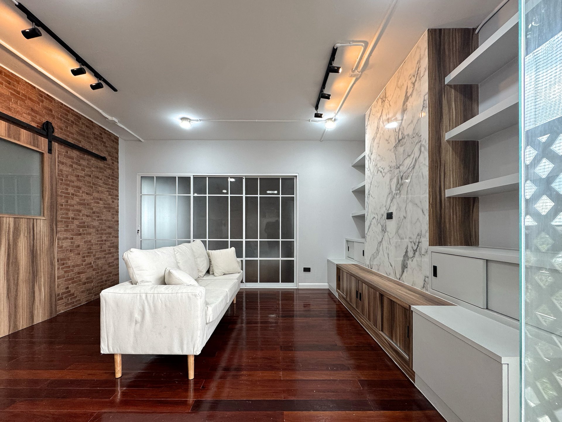 ห้องนั่งเล่นกว้าง โล่งสบาย ออกแบบใหม่พร้อมอยู่ทันที