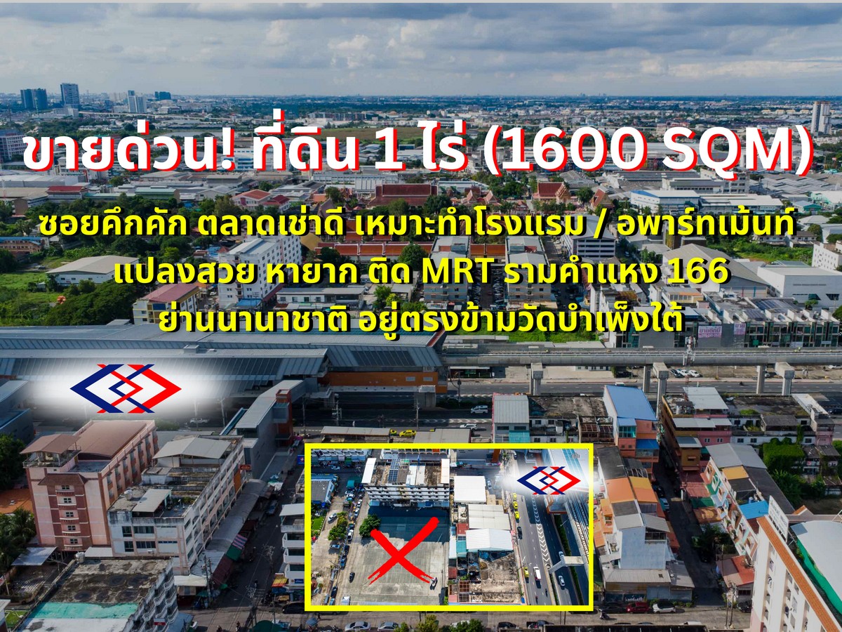 RARE ITEM แปลงสวยเหมาะลงทุน ขายที่ดิน รามคำแหง 166 (สร้างได้ 8 ชั้น) ใกล้ MRT 100 กว่าเมตร