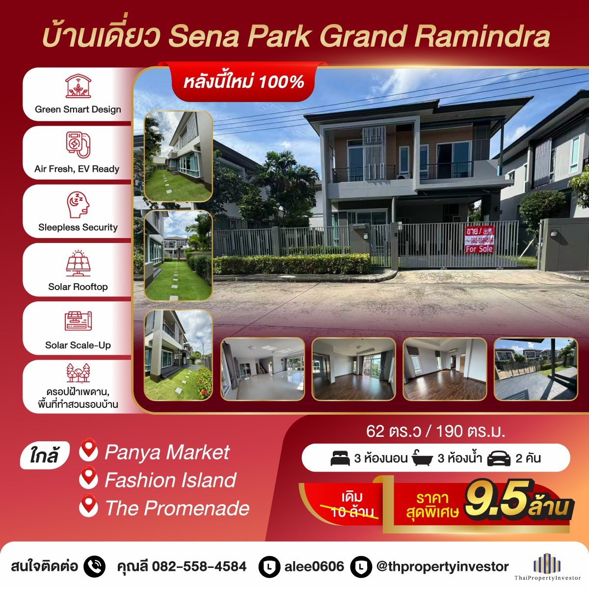 บ้านใหม่ 100% ! ทำเลติดถนนวงแหวนกาญจนาฯ เพียง 5 นาที ถึงห้างแฟชั่นฯ !ขายบ้านเดี่ยว เสนา พาร์ค แกรนด์ รามอินทรา (Sena Park Grand Ramindra) 62 ตร.ว (Green Smart Design )Solar Rooftop และ Solar Scale-Up !