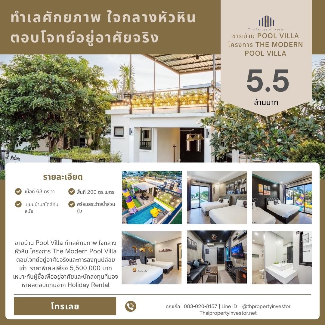 ขายบ้านเดี่ยวพูลวิลล่า The Modern Pool Villa หัวหิน 63 ตร.ว. สไตล์โมเดิร์น พร้อมสระส่วนตัว ทำเลศักยภาพใกล้หาดและห้างบลูพอร์ต เหมาะพักผ่อนและปล่อยเช่า