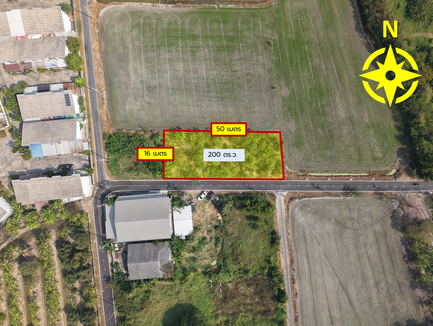 ✅ แปลงสี่เหลี่ยม กว้าง 16 เมตร ยาว (ติดถนน) 50 เมตร ผังเมืองสีส้ม