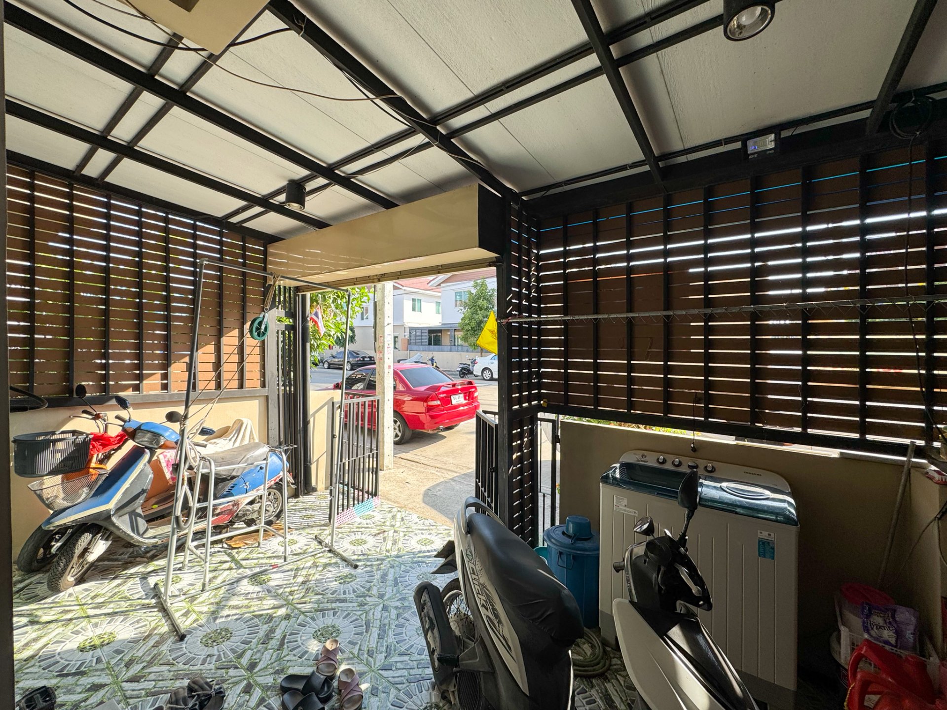 ✅ ต่อเติมโรงจอดรถหน้าบ้าน พร้อมปูกระเบื้องเต็มพื้นที่