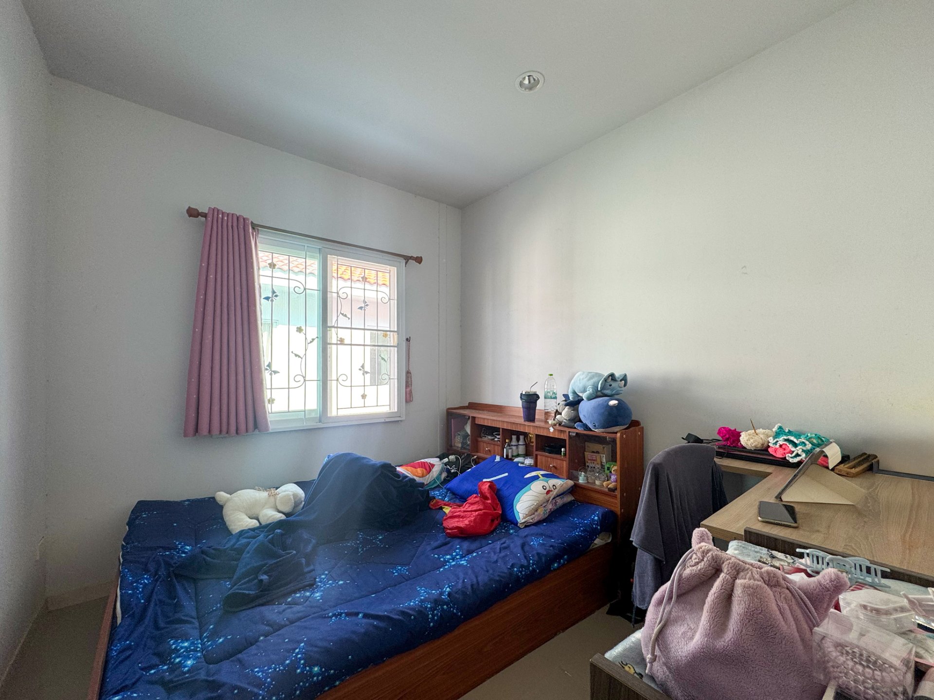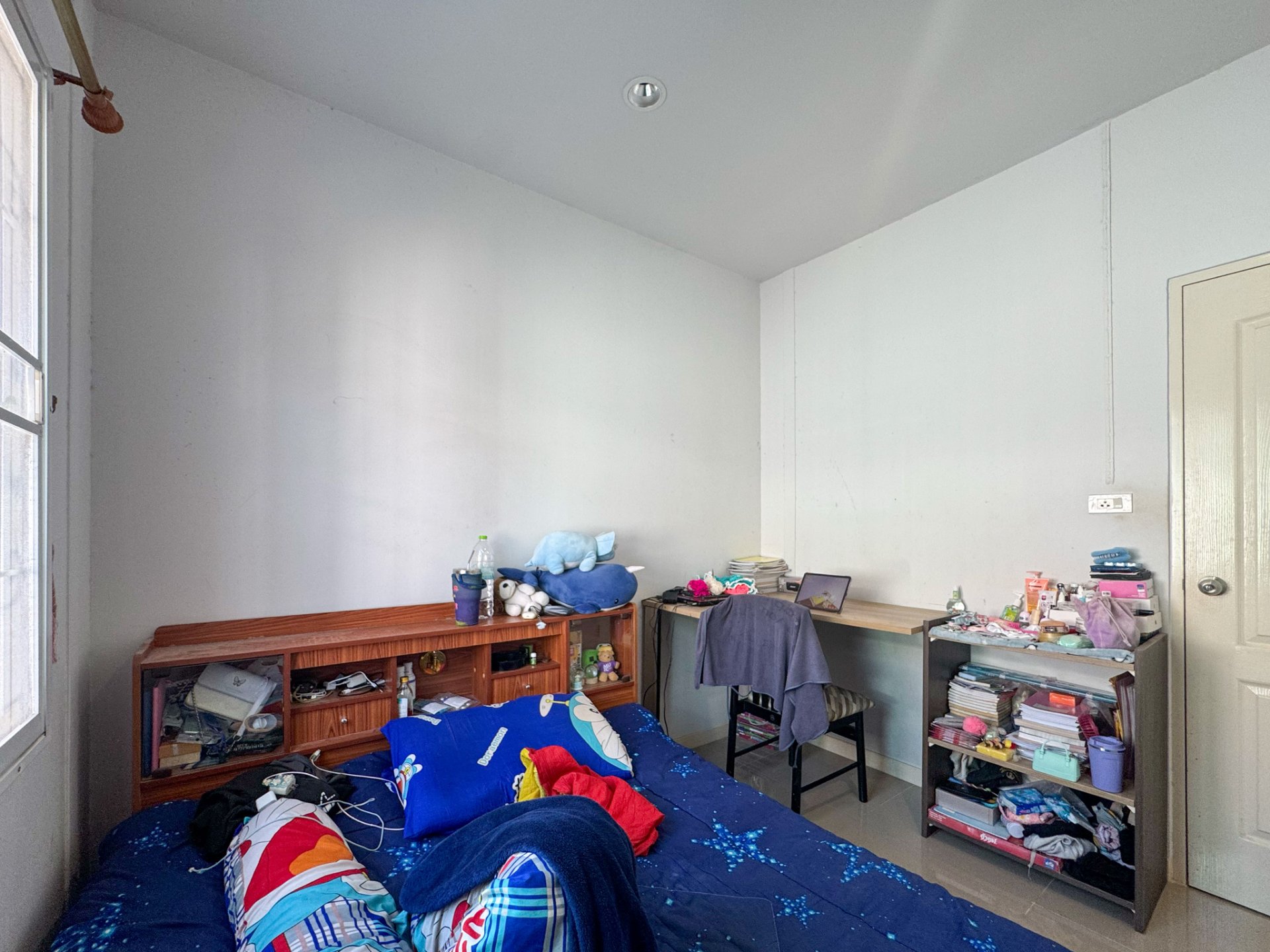 ✅ เตียงและโต๊ะทำงานในห้องนอนเล็ก