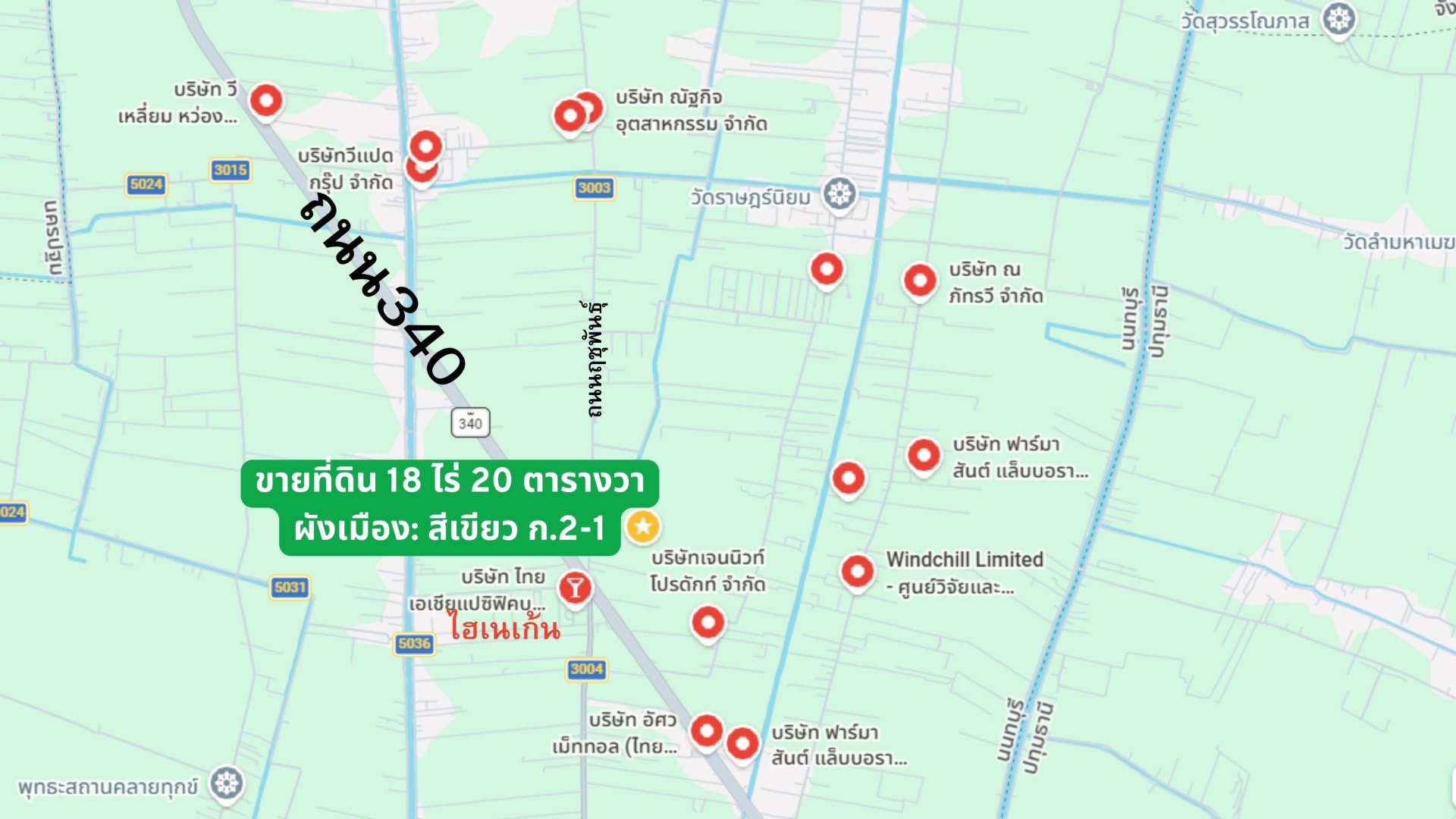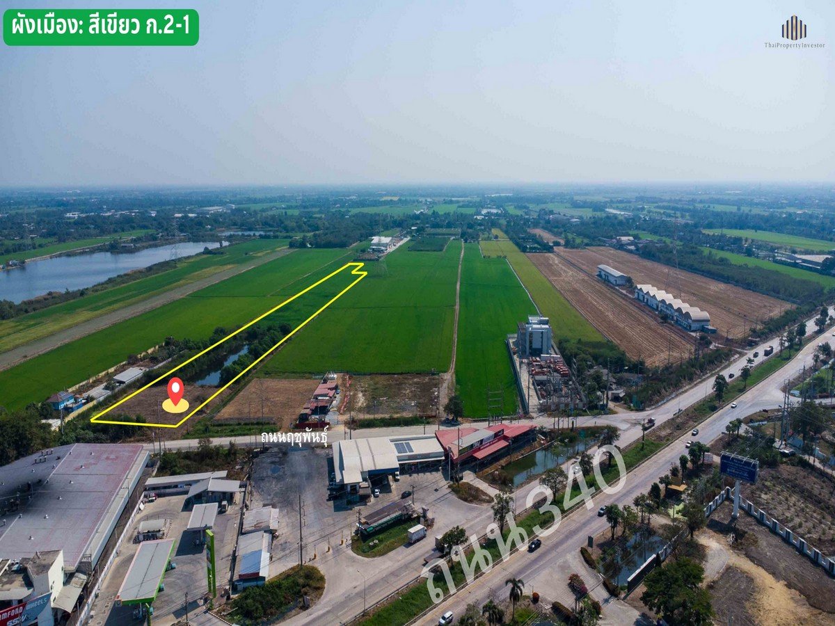 ขายที่ดิน 18 ไร่ ไทรน้อย นนทบุรี | ติดถนนฤชุพันธุ์ (3003) ใกล้ถนน 340 เพียง 200 ม. | เหมาะทำโกดัง–โลจิสติกส์ | 2.4 ลบ./ไร่